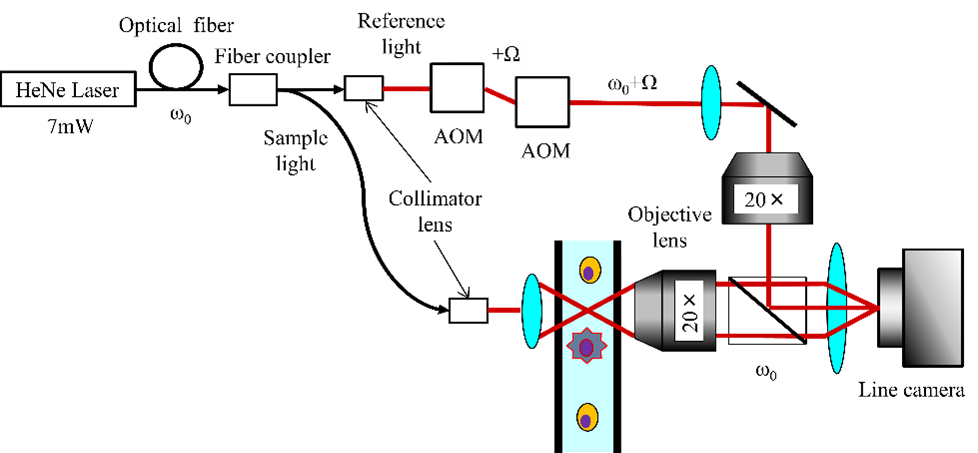 リキッドバイオプシーのターゲットの一つとして注目される血中循環腫瘍細胞(CTC)の検出を目指した機器の開発を、浜松ホトニクス社と共同で行っています。従来の、細胞表面マーカーを用いてCTCを同定するpositive selection法ではCTCの取りこぼしが生じることが報告され、末梢血中の有核細胞から白血球を除去、または非白血球と識別することでCTCを同定するnegative selection法が必要とされています。当科では定量位相顕微鏡(QPM)を用いて非標識下に高解像度で細胞の形態情報を抽出し、人工知能(AI)を用いた画像認証による白血球とCTCの識別を目指しています。これまでに、2次元QPM技術を流路に応用して2D位相イメージングフローサイトメーターを開発し、AIにより高精度でヒト白血球と疑似CTCを識別できることを確認しました。また、健常人と比べ担癌患者で非白血球有核細胞の比率が高いこと、進行食道癌患者において術前化学療法や手術によって同細胞比率が変化することなどを報告いたしました。現在も浜松ホトニクス社と共同研究を継続して行っており、3次元OPMを用いた新たなCTC識別システムの開発、臨床実用を目指しています。