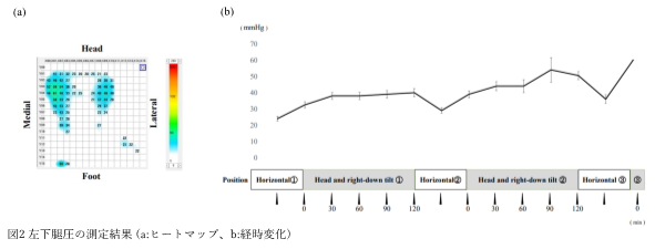 腹腔鏡下手術とロボット支援下手術の普及に伴い、砕石位手術の際に生じる下腿のコンパートメント症候群(Well-leg compartment syndrome : WLCS)が問題となっております。腹腔鏡下砕石位手術を施行するS状結腸以下大腸癌患者50人を対象とし、SRソフトビジョン®を使用し術中の左下腿内側の外圧を経時的に測定し検討を行いました。測定の結果、右下頭低位とすることで、左下腿の外圧は有意に上昇し、術中も経時的に増大する事が明らかになりました。更に、BMIと下腿周囲径は、右下頭低位後30分における左下腿圧と正の相関を認めました。今回の研究結果として、術前下腿周囲径の測定がWLCS発生リスク管理に重要であることを報告しました。