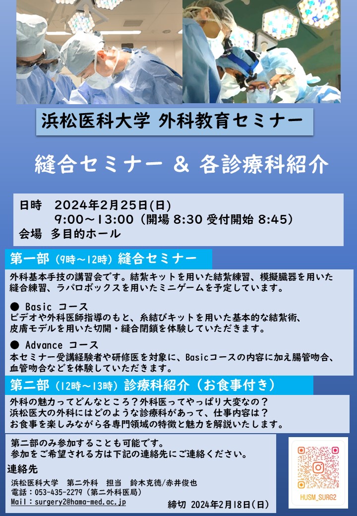 2024年2月25日 縫合セミナー&各診療科紹介を開催します!