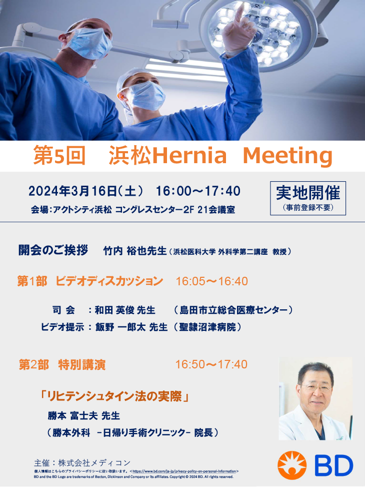 2024年3月16日に第5回 浜松Hernia meeting が開催されます。
