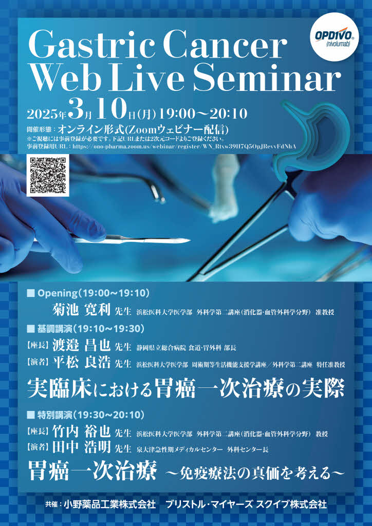 2025年3月10日(月)19:00より「Gastric Cancer Web Live Seminar」が開催されます。