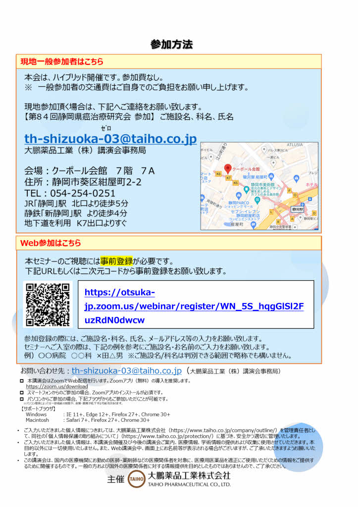 TOP >  セミナー・研修会情報 >  2025年3月15日(土)14:30より「第84回静岡県癌治療研究会」が開催されます。