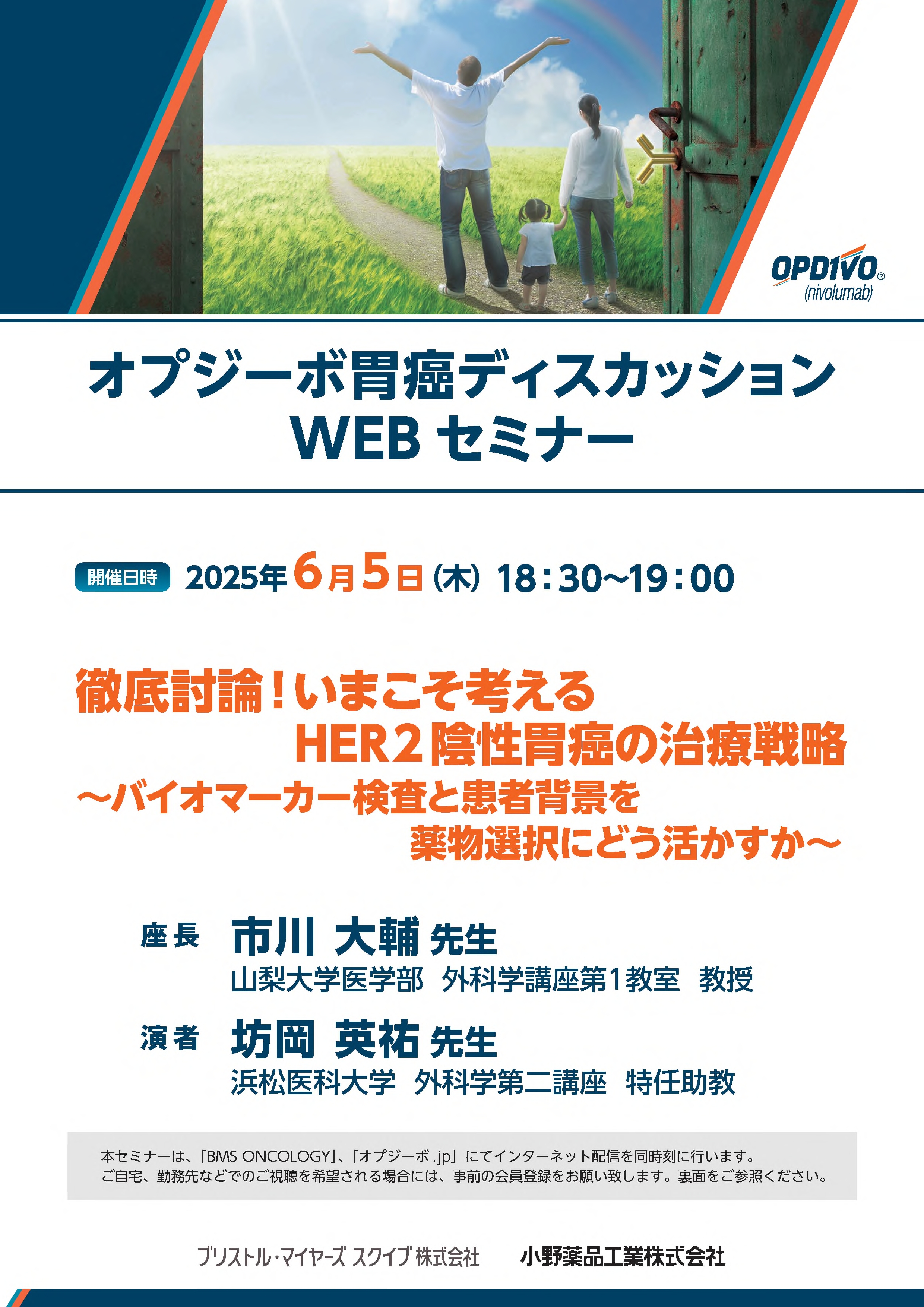 2025年6月5日(木)18:30より「オプジーボ胃癌ディスカッションWEBセミナー」が開催されます。