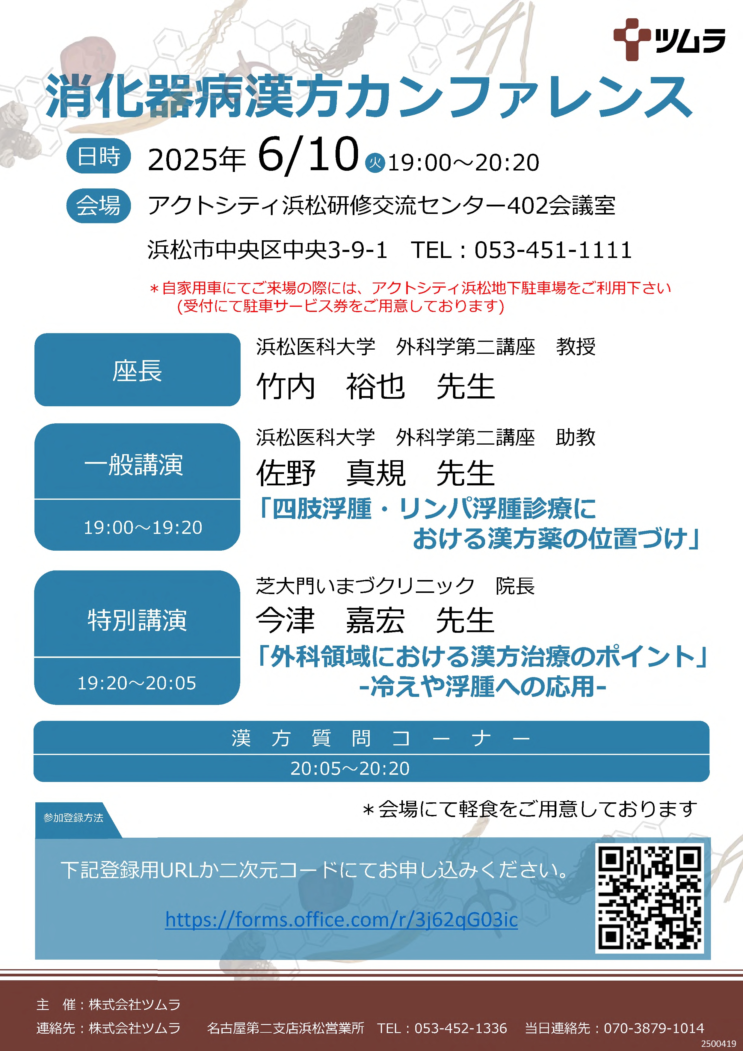 TOP >  セミナー・研修会情報 >  2025年6月10日(火)19:00より「消化器病漢方カンファレンス」が開催されます。