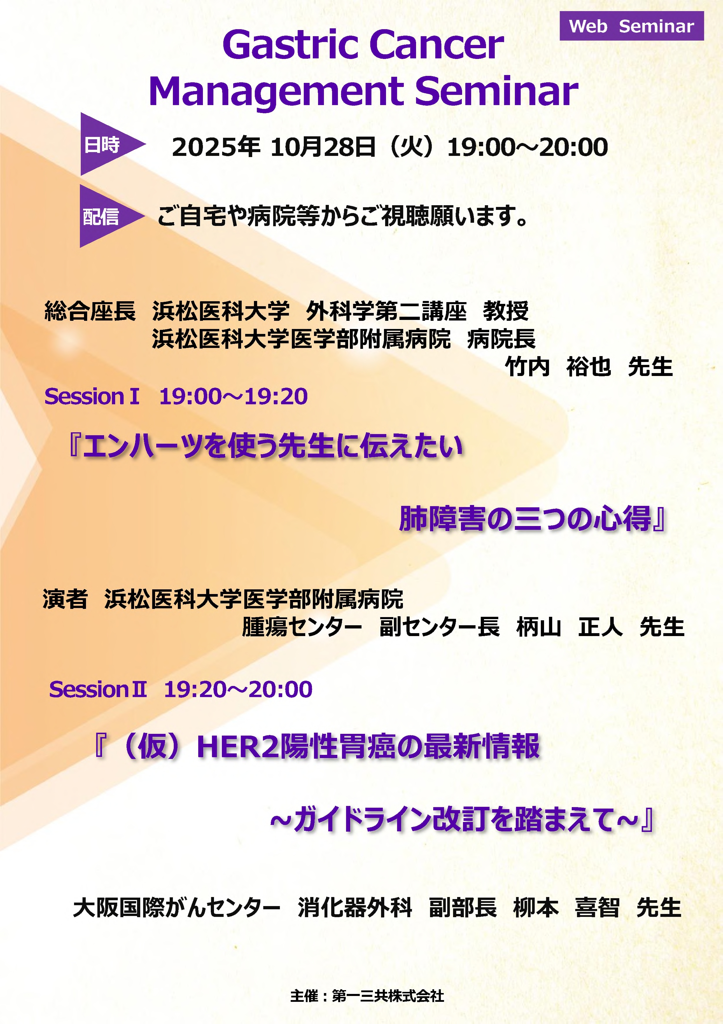 TOP >  セミナー・研修会情報 >  2025年10月28日(火)19:00より「Gastric Cancer Management Seminar」が開催されます。
