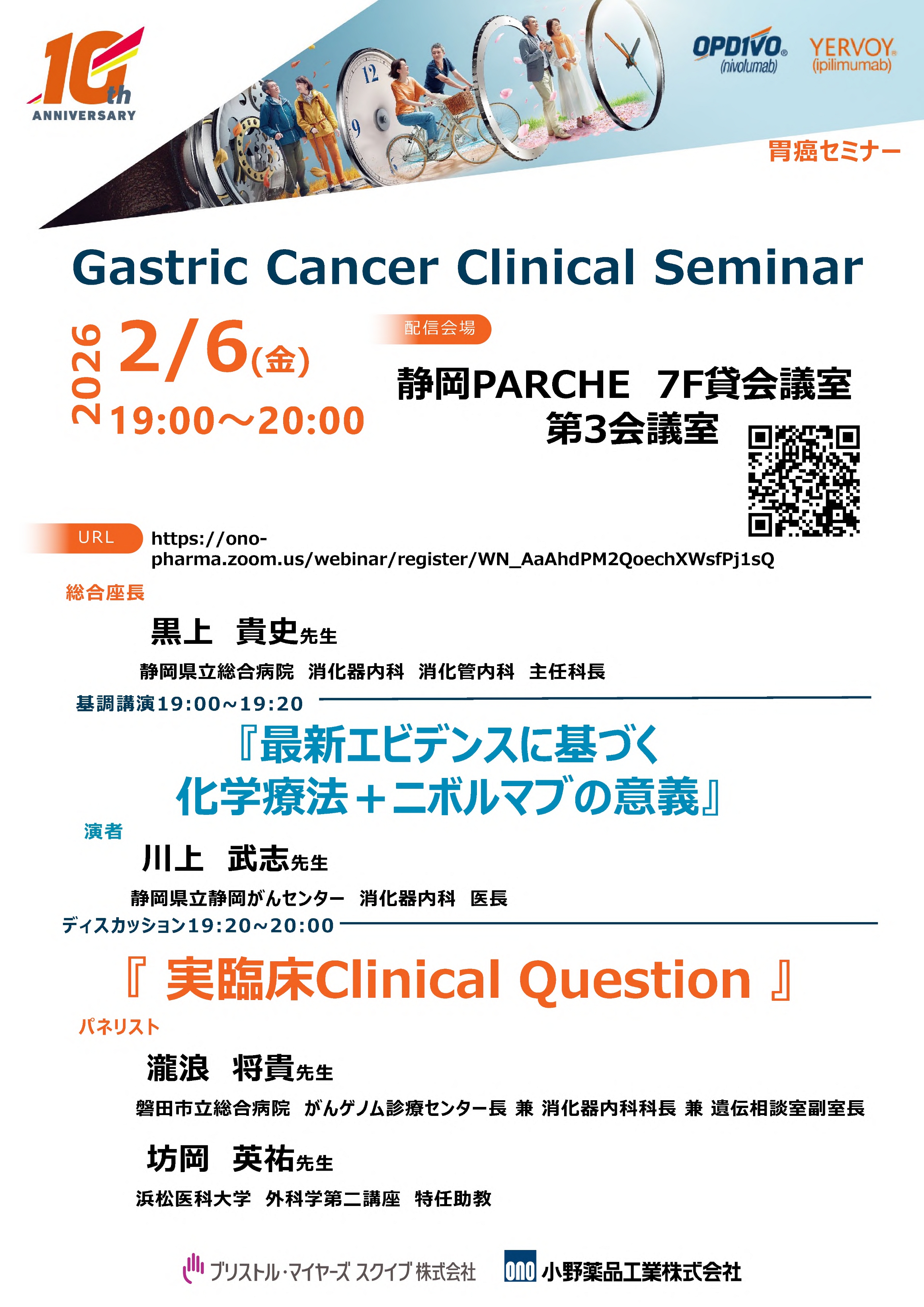 TOP >  セミナー・研修会情報 >  2026年2月6日(金)19:00より「GastricCancer Clinical Seminar」が開催されます。
