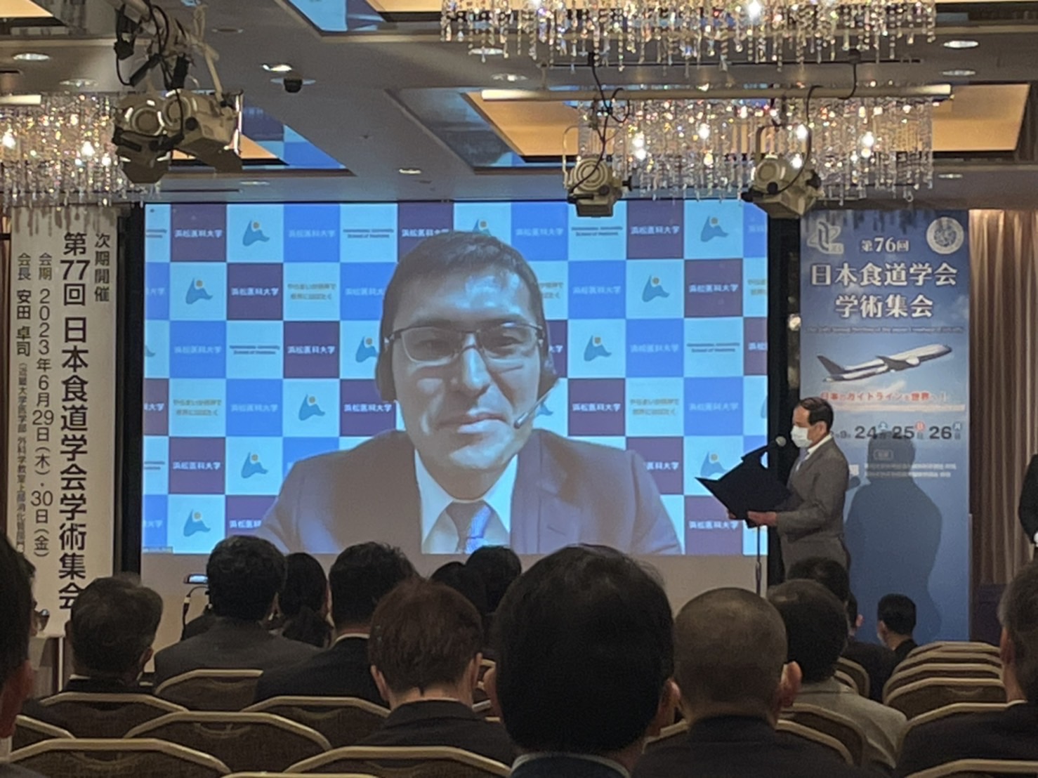 授賞式は第76回日本食道学会学術集会総会で行われたのですが、台風の影響で新幹線が不通となりWeb参加となりました。