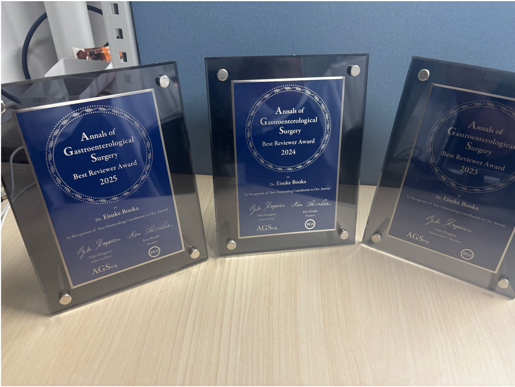 日本消化器外科学会が発刊する英文誌、AGSurgにおいて、前年1年間に本誌の査読に貢献した査読者のうち、ジャーナルの発展に深く寄与した方に対し、その尽力を称え、感謝の意を表する目的とされた賞です。Best reviewer Award 2023, 2024に続き3年連続で選出して頂くことが出来ました。