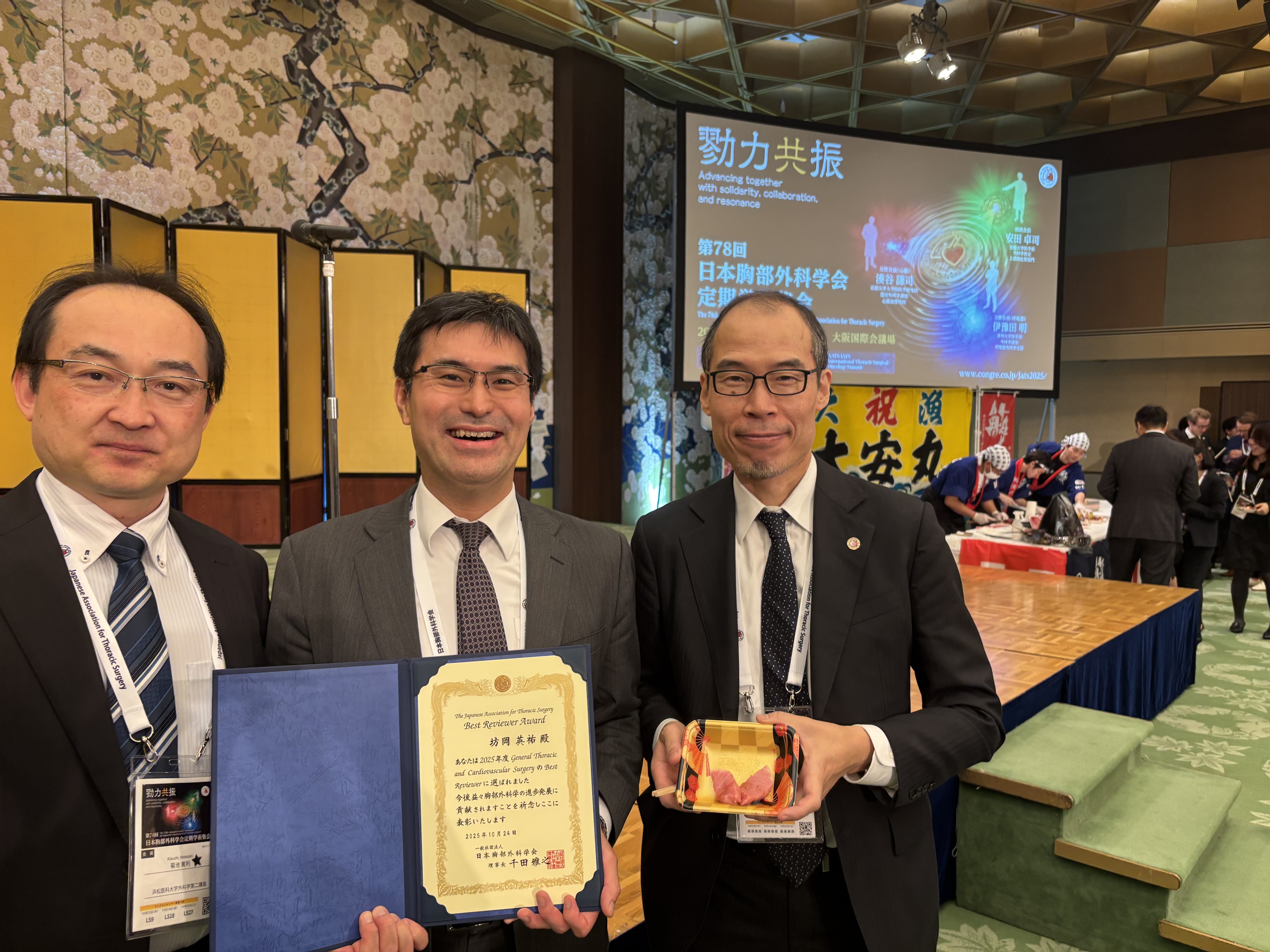 坊岡英祐先生が日本胸部外科学会機関誌General Thoracic and Cardiovascular Surgery誌の2025年度Best reviewer Awardを受賞しました。