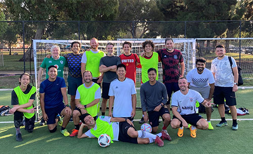 (写真9 )趣味で行っていたサッカー仲間(真ん中下が筆者)。
