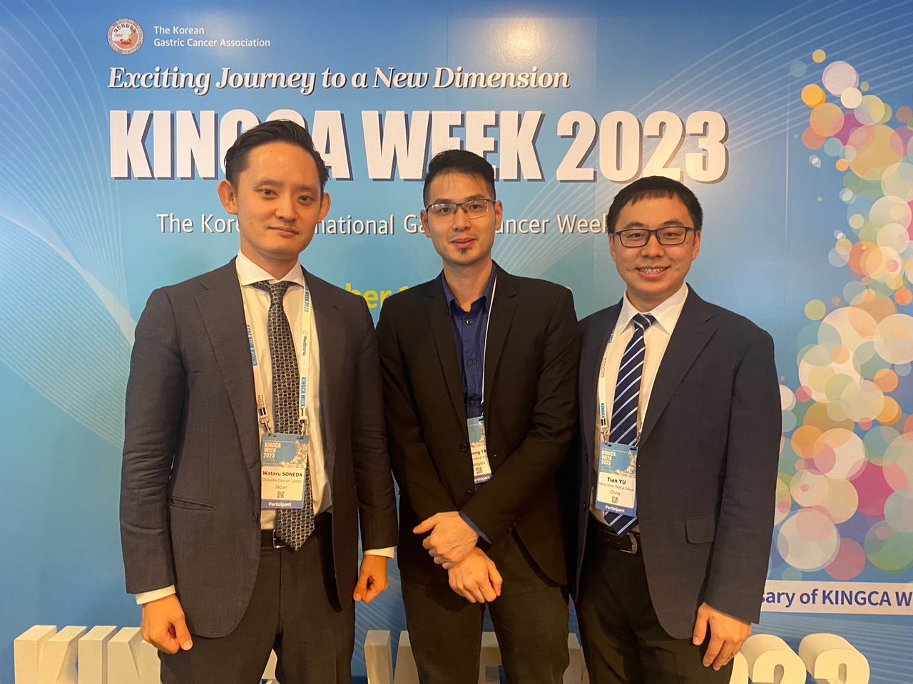 胃外科は特に国際交流の機会が多く、海外からの病院研修を多く受け入れています。中国や韓国、マレーシアなどのアジアをはじめ、イタリアやブラジルなどからも見学者が訪問していました。いずれも英語でのコミュニケーションとなりますが、世代の近い海外の外科医と語り合えることはまたとない貴重な経験でありました。私は当初英後が苦手ではありましたが、毎日のように英会話の機会があるため苦手意識も徐々に薄れていき、今では稚拙ながらも積極的にコミュニケーションを図れるようになりました。また国際学会への発表や海外研修の機会もあり、私はKorean International Gastric Cancer Association (KINGCA) WEEKのMaster Classに参加しCatholic University of KoreaのSt. Mary Hospitalへの短期研修と学会発表のチャンスをいただきました。韓国でも胃癌手術は非常に盛んであり、日本ではあまり見られないreduced port surgeryの見学や、同じくMaster Classに参加した同年代の胃外科との非常に貴重な交流の機会となり、今後へのさらなるモチベーションアップに繋がったと感じております。